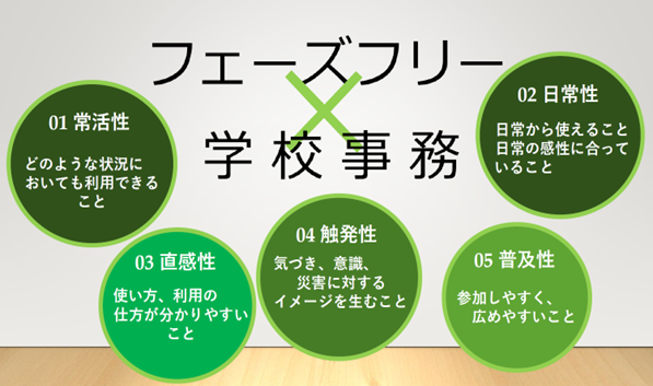 学校事務の「いつもの仕事」の延長に、防災のヒントはたくさんありそうですね。私たちもチーム学校の一員、できることから無理なく、小さな準備を続けていきましょう。また、生きる力を高めるこの考え方は学校以外でも、きっと役に立つはずです。ご家庭などでも、ぜひフェーズフリーを取り入れてみてください。
